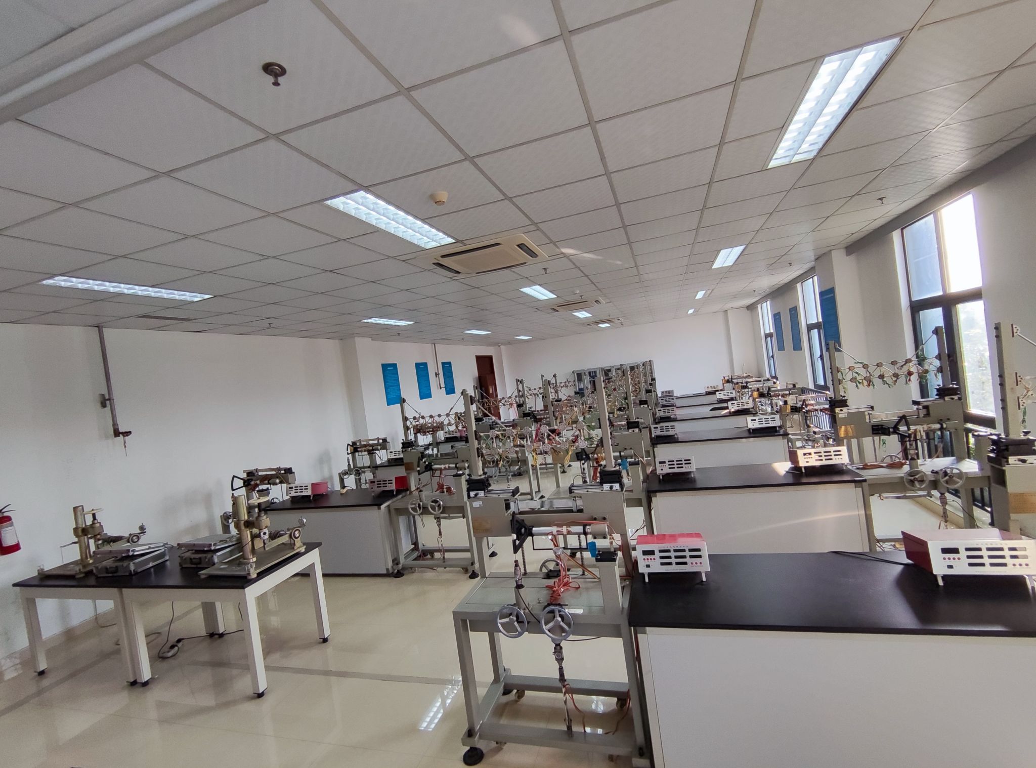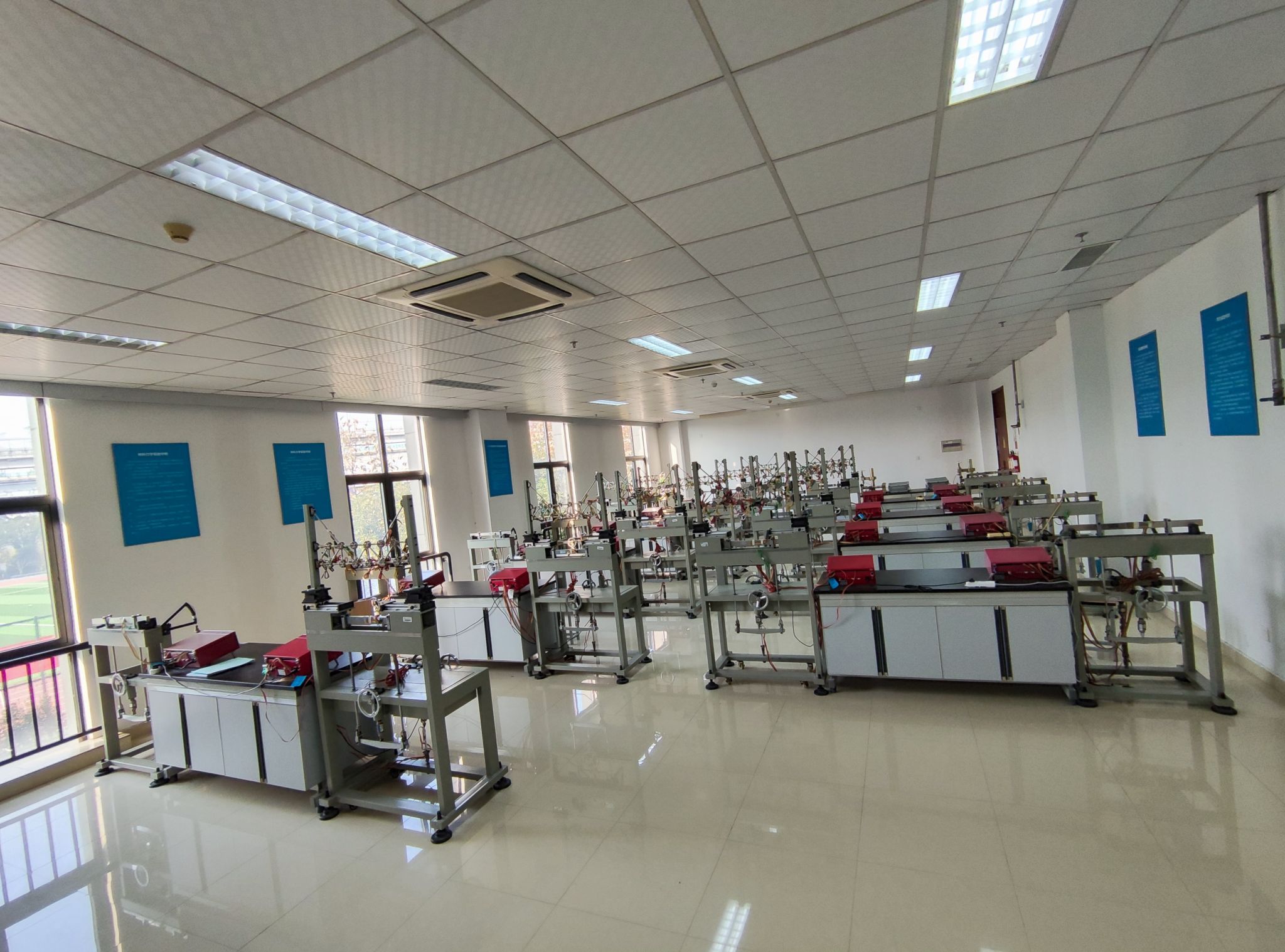 材料力学实验室主要承担土木工程专业、城市地下空间工程专业和建筑学专业《材料力学》、《建筑力学》等相关课程实验教学任务。拥有万能试验机、多功能组合试验台,可承担的主要实验内容有拉伸实验、压缩实验、弹性模量和泊松比的测定、剪切弹性模量的测定和弯曲正应力实验、弯扭组合变形实验,学生可以利用本实验室的设备对一些材料的基本常用力学性能指标进行测定。